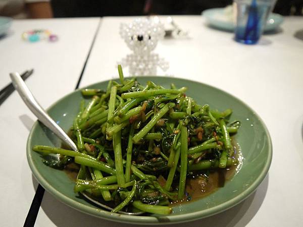 上菜囉,第一道,泰式料理必點之一:蝦醬空心菜 $180